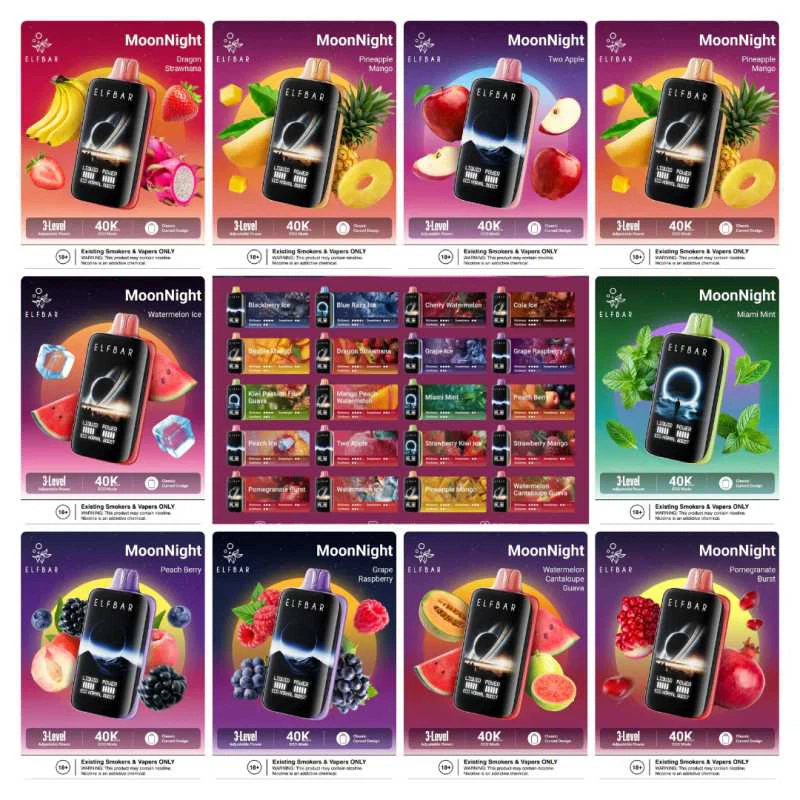 Elfbar Moon Night 40000 Puffs jsou vaším ideálním společníkem v evropské pulzující vapingové scéně; Elektronická cigareta, která vydrží vysoké teploty, sociální energii a snadno dodává jedinečné příchutě .