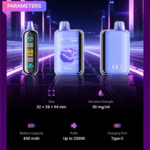 Jednorázová e-cigareta ELF BAR Raya D3 25k potáhnutí, špičková jednorázová e-cigareta navržená s precizností pro moderního vapera. Toto inovativní zařízení nabízí 15 různých příchutí a je poháněno 850mAh baterií s rychlým nabíjecím portem Type-C, což zajišťuje konzistentní zážitek z vapování. S kapacitou 20 ml e-liquidu a 1. trojitou síťovou spirálkou poskytuje robustních 25000 potáhnutí s obsahem nikotinu 50mg/ml. Celoobrazovkový displej a nastavitelné proudění vzduchu umožňují přesné ovládání, zatímco tři provozní režimy – Lite (12W pro 25000 potáhnutí), Smooth (17W pro 20000 potáhnutí) a Turbo (30W pro 15000 potáhnutí) – nabízejí přizpůsobitelné úrovně intenzity. S kompaktní velikostí 52*28*94 mm je tento produkt pečlivě navržen pro efektivitu a uspokojení s každým potahem.